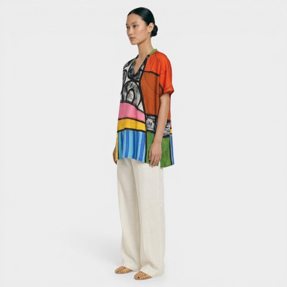 YODYOKO Blouse come with patterns on the fabric that are all created by hand until they become works of art on the fabric with the power of colors that create eye-catching dimensions that are unique to the YODYOKO brand that is a mixture of art and clothes that can be worn. Can be worn in everyday life Focus on a week-end look that is comfortable, bright, fun, but still chic. Elegant and stylish in your own way.