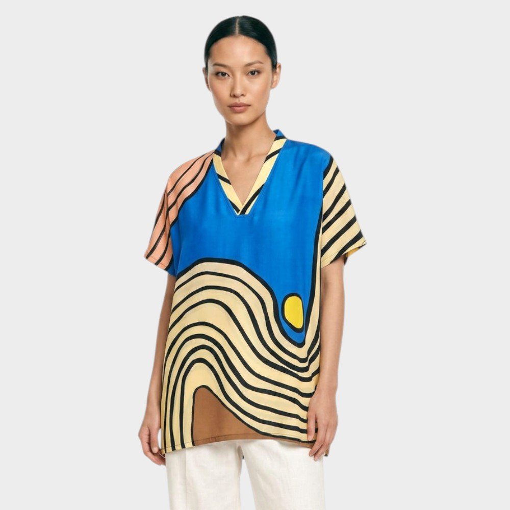 YODYOKO Blouse come with patterns on the fabric that are all created by hand until they become works of art on the fabric with the power of colors that create eye-catching dimensions that are unique to the YODYOKO brand that is a mixture of art and clothes that can be worn. Can be worn in everyday life Focus on a week-end look that is comfortable, bright, fun, but still chic. Elegant and stylish in your own way.