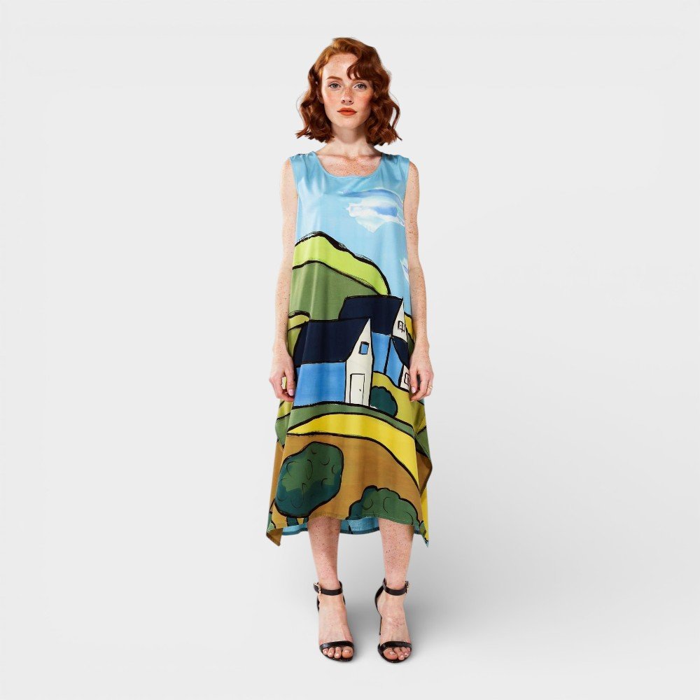 YODYOKO Woman Sleeveless Dress. come with patterns on the fabric that are all created by hand until they become works of art on the fabric with the power of colors that create eye-catching dimensions that are unique to the YODYOKO brand that is a mixture of art and clothes that can be worn. Can be worn in everyday life Focus on a week-end look that is comfortable, bright, fun, but still chic. Elegant and stylish in your own way.