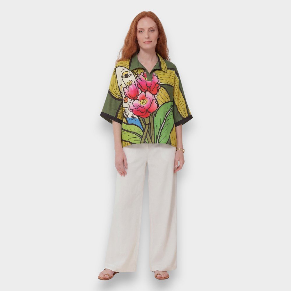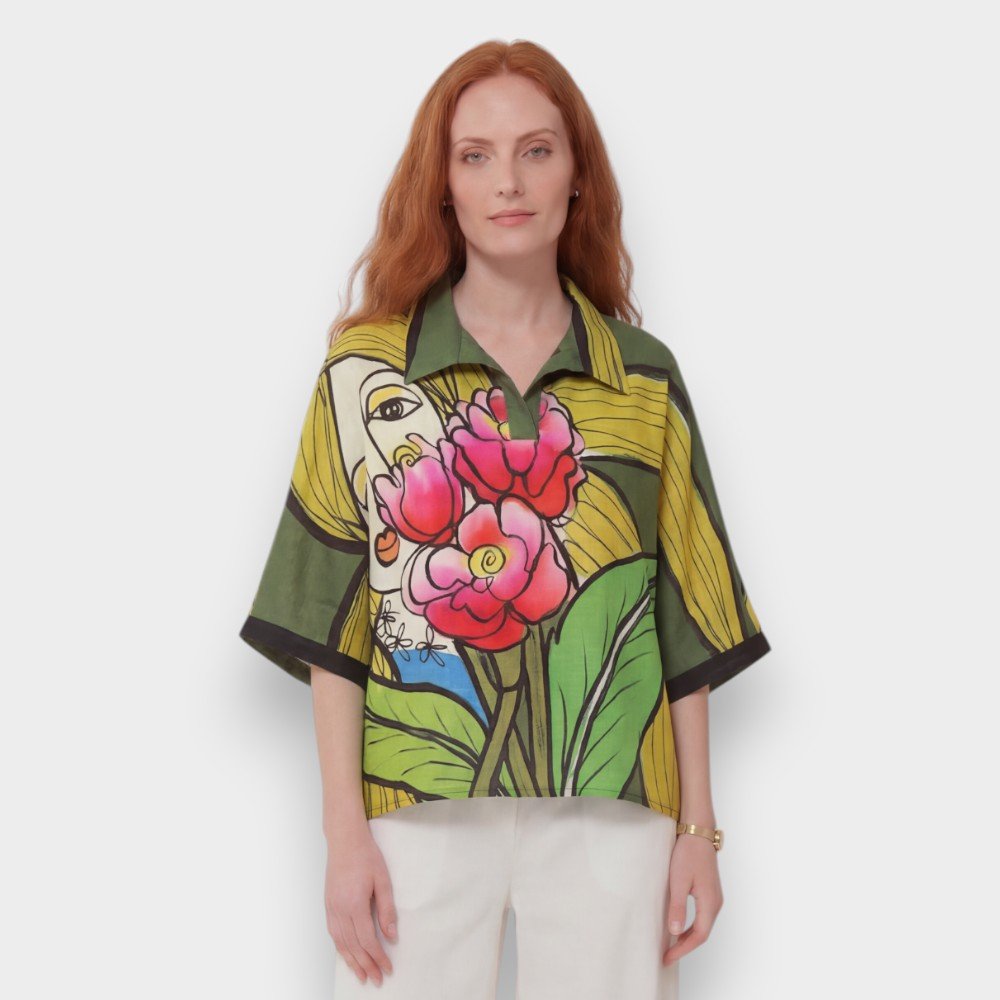 YODYOKO woman casual batwing blouse come with patterns on the fabric that are all created by hand until they become works of art on the fabric with the power of colors that create eye-catching dimensions that are unique to the YODYOKO brand that is a mixture of art and clothes that can be worn. Can be worn in everyday life Focus on a week-end look that is comfortable, bright, fun, but still chic. Elegant and stylish in your own way.