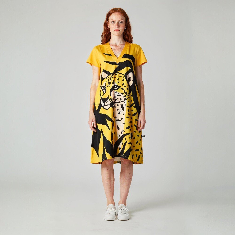 YODYOKO Yellow Women Short Sleeve Dress.