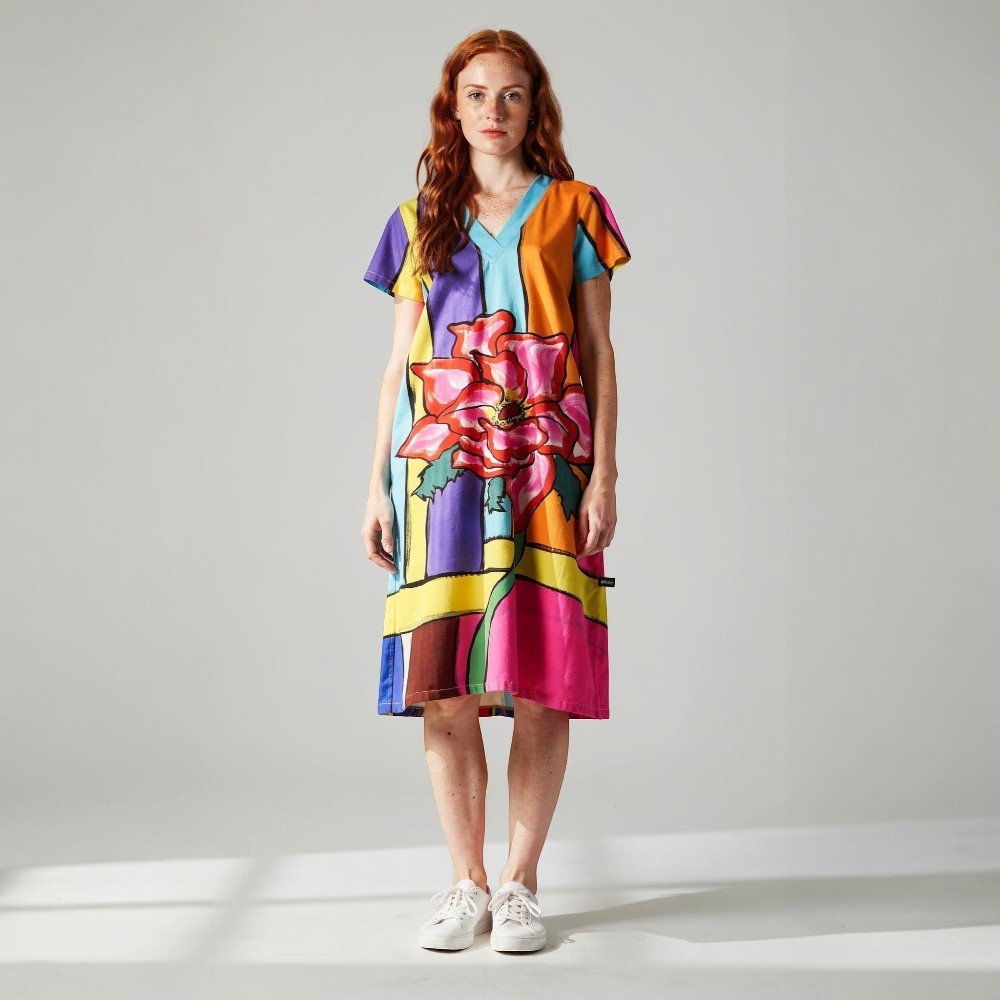 YODYOKO Woman Short Sleeve Dress come with patterns on the fabric that are all created by hand until they become works of art on the fabric with the power of colors that create eye-catching dimensions that are unique to the YODYOKO brand that is a mixture of art and clothes that can be worn. Can be worn in everyday life Focus on a week-end look that is comfortable, bright, fun, but still chic. Elegant and stylish in your own way.