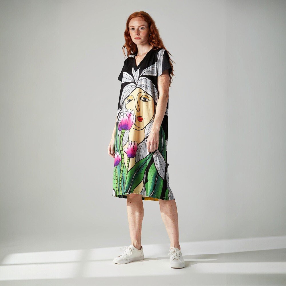 YODYOKO Woman Short Sleeve Dress come with patterns on the fabric that are all created by hand until they become works of art on the fabric with the power of colors that create eye-catching dimensions that are unique to the YODYOKO brand that is a mixture of art and clothes that can be worn. Can be worn in everyday life Focus on a week-end look that is comfortable, bright, fun, but still chic. Elegant and stylish in your own way.