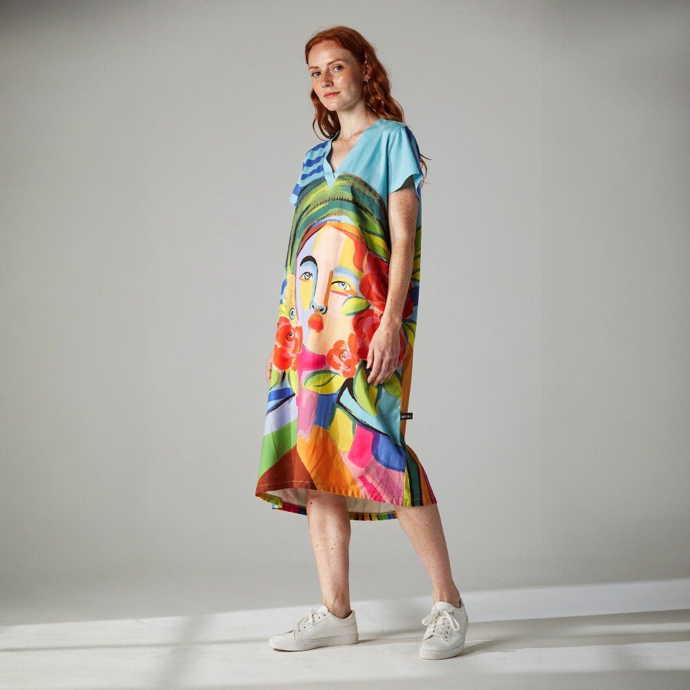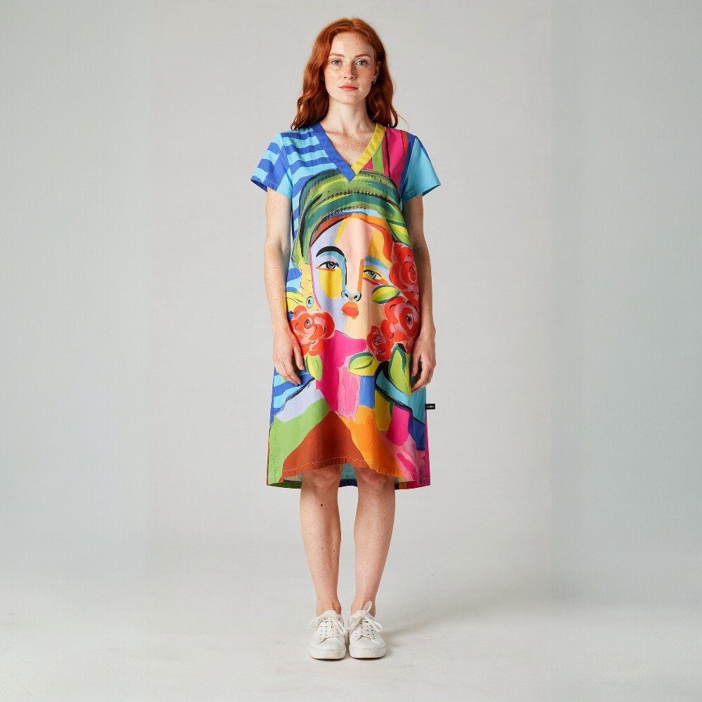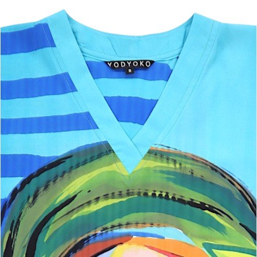 YODYOKO Woman Short Sleeve Dress come with patterns on the fabric that are all created by hand until they become works of art on the fabric with the power of colors that create eye-catching dimensions that are unique to the YODYOKO brand that is a mixture of art and clothes that can be worn. Can be worn in everyday life Focus on a week-end look that is comfortable, bright, fun, but still chic. Elegant and stylish in your own way.