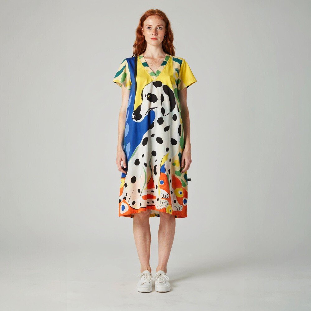YODYOKO Woman Short Sleeve Dress come with patterns on the fabric that are all created by hand until they become works of art on the fabric with the power of colors that create eye-catching dimensions that are unique to the YODYOKO brand that is a mixture of art and clothes that can be worn. Can be worn in everyday life Focus on a week-end look that is comfortable, bright, fun, but still chic. Elegant and stylish in your own way.