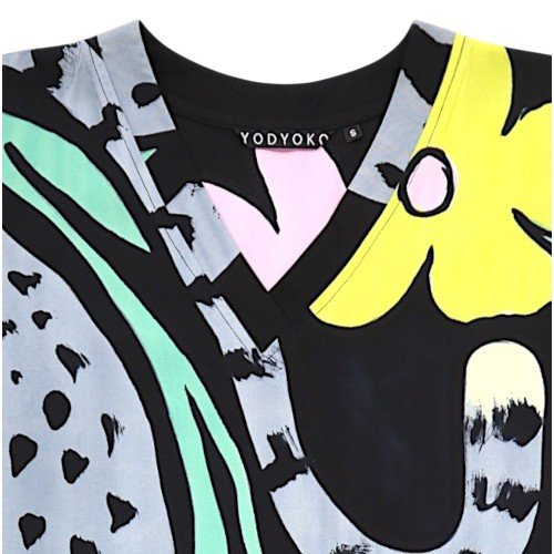 YODYOKO Woman Short Sleeve Dress come with patterns on the fabric that are all created by hand until they become works of art on the fabric with the power of colors that create eye-catching dimensions that are unique to the YODYOKO brand that is a mixture of art and clothes that can be worn. Can be worn in everyday life Focus on a week-end look that is comfortable, bright, fun, but still chic. Elegant and stylish in your own way.