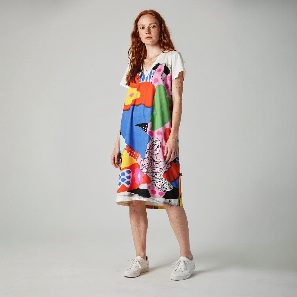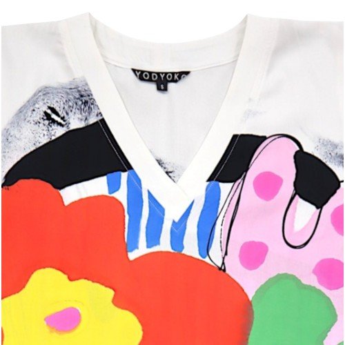 YODYOKO Woman Short Sleeve Dress come with patterns on the fabric that are all created by hand until they become works of art on the fabric with the power of colors that create eye-catching dimensions that are unique to the YODYOKO brand that is a mixture of art and clothes that can be worn. Can be worn in everyday life Focus on a week-end look that is comfortable, bright, fun, but still chic. Elegant and stylish in your own way.