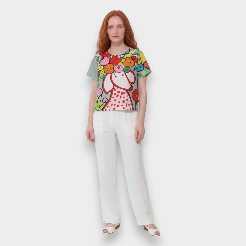 Woman Crop Top - Green : Flower Crown Dalmatian