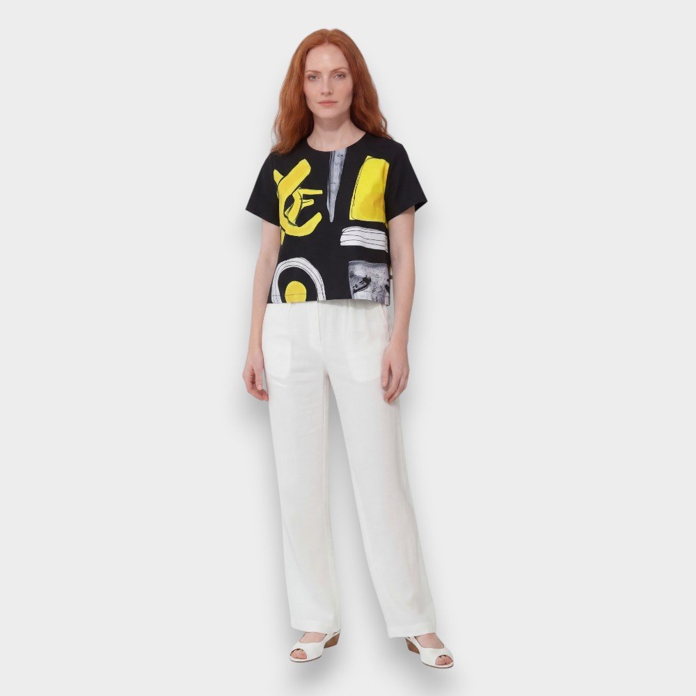 Woman Crop Top - Black : Yellow and black Abstract art
