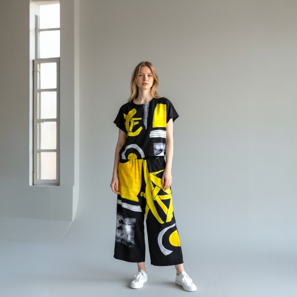 Woman Relax Pants come with patterns on the fabric that are all created by hand until they become works of art on the fabric with the power of colors that create eye-catching dimensions that are unique to the YODYOKO brand that is a mixture of art and clothes that can be worn. Can be worn in everyday life Focus on a week-end look that is comfortable, bright, fun, but still chic. Elegant and stylish in your own way.
