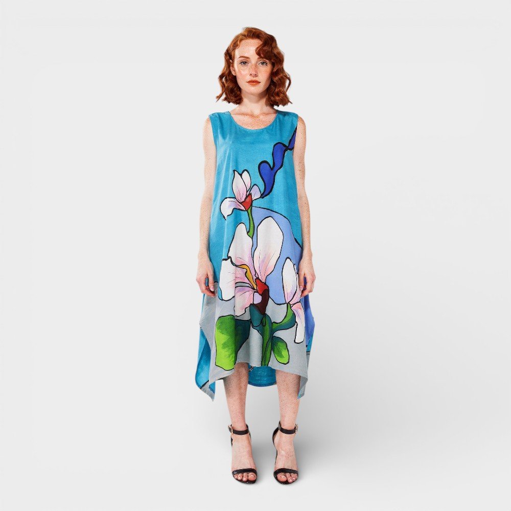 เดรสแขนกุดจากแบรนด์ YODYOKO มาพร้อมกับลวดลายบนผืนผ้าที่สร้างสรรค์ด้วยมือจนเกิดเป็นผลงานศิลปะบนผืนผ้า มีพลังแห่งสีสัน สร้างมิติสะดุดตาอันเป็นเอกลักษณ์เฉพาะตัวของแบรนด์ YODYOKO มีส่วนผสมระหว่างงานศิลปะกับเสื้อผ้า สามารถสวมใส่ได้ในชีวิตประจำวัน เน้นลุควีคเอนด์ที่ดูสบาย สดใส สนุกสนานแต่ก็ยังคงความโก้ เรียบหรูและมีสไตล์ในแบบที่เป็นตัวของตัวเอง