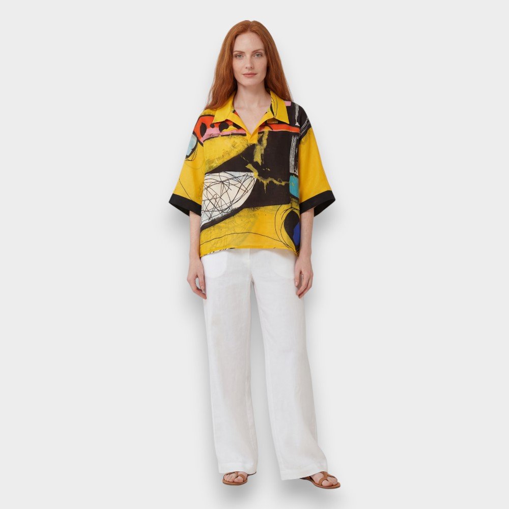 เสื้อปีกค้างคาวผู้หญิง จากแบรนด์ YODYOKO มาพร้อมกับลวดลายบนผืนผ้าที่สร้างสรรค์ด้วยมือจนเกิดเป็นผลงานศิลปะบนผืนผ้า