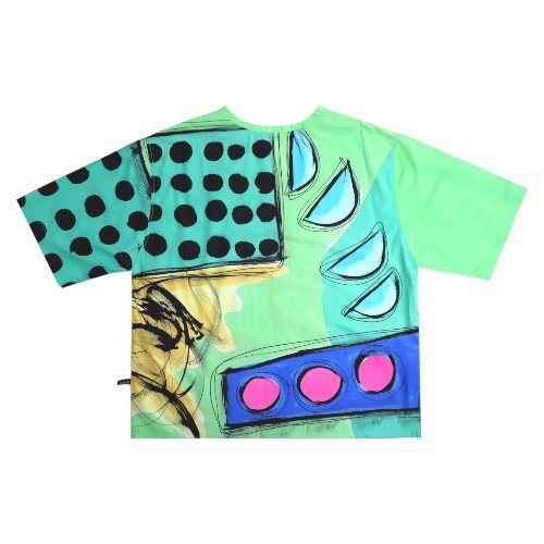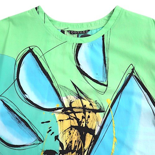 เสื้อผู้หญิงตัวหลวมจากแบรนด์ YODYOKO มาพร้อมกับลวดลายบนผืนผ้าที่สร้างสรรค์ด้วยมือจนเกิดเป็นผลงานศิลปะบนผืนผ้า