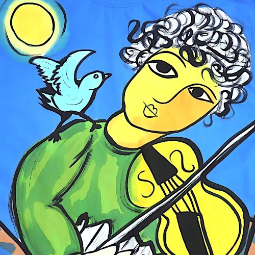 เสื้อตัวหลวม - สีน้ำเงิน : ลายไวโอลินแห่งอิสระ