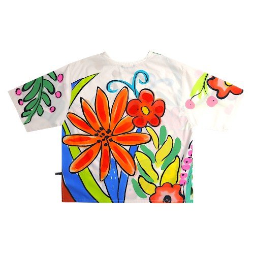 เสื้อผู้หญิงตัวหลวมจากแบรนด์ YODYOKO มาพร้อมกับลวดลายบนผืนผ้าที่สร้างสรรค์ด้วยมือจนเกิดเป็นผลงานศิลปะบนผืนผ้า