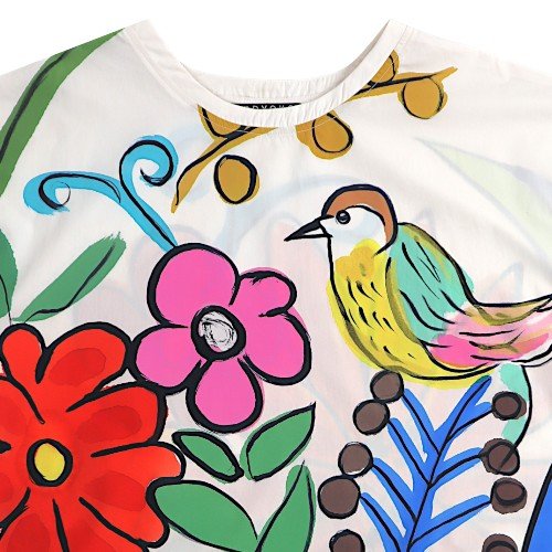 เสื้อตัวหลวม - สีขาว : ลายนกน้อยในแดนดอกไม้