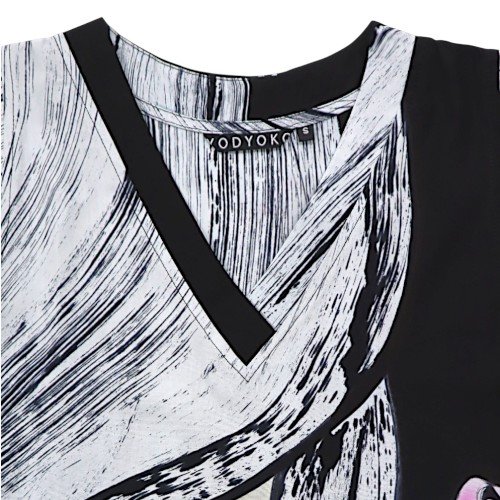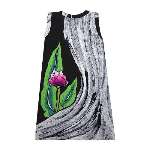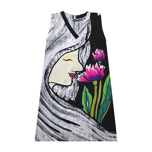 เดรสผู้หญิงแขนกุดจากแบรนด์ YODYOKO มาพร้อมกับลวดลายบนผืนผ้าที่สร้างสรรค์ด้วยมือจนเกิดเป็นผลงานศิลปะบนผืนผ้า