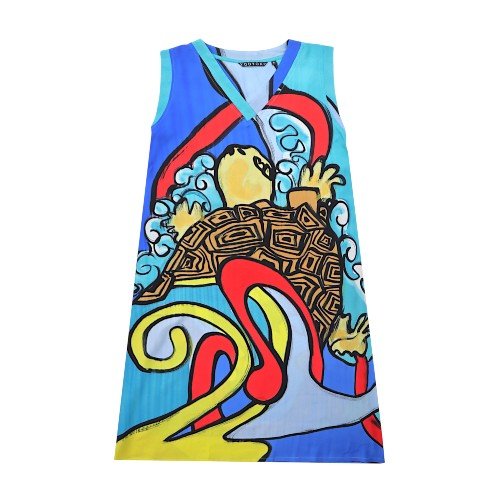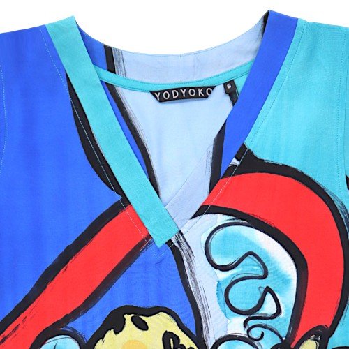 เดรสผู้หญิงแขนกุดจากแบรนด์ YODYOKO มาพร้อมกับลวดลายบนผืนผ้าที่สร้างสรรค์ด้วยมือจนเกิดเป็นผลงานศิลปะบนผืนผ้า