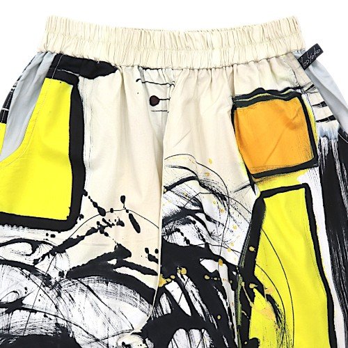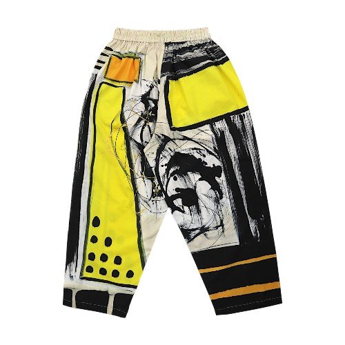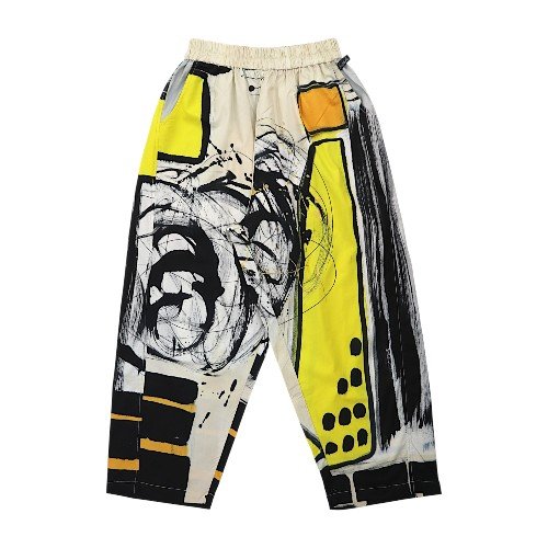 กางเกงทรงหลวมผู้หญิงจากแบรนด์ YODYOKO มาพร้อมกับลวดลายบนผืนผ้าที่สร้างสรรค์ด้วยมือจนเกิดเป็นผลงานศิลปะบนผืนผ้า