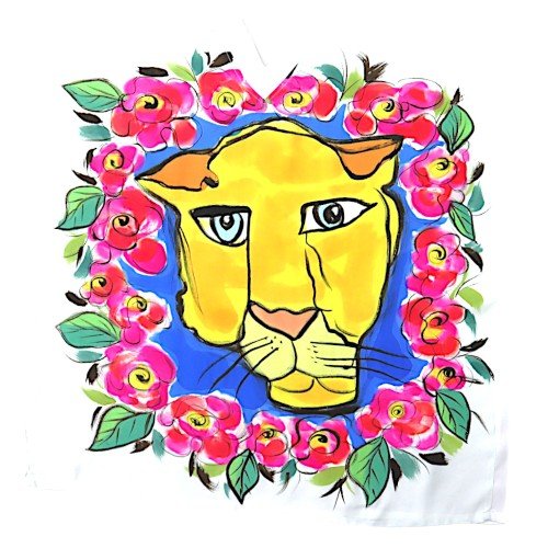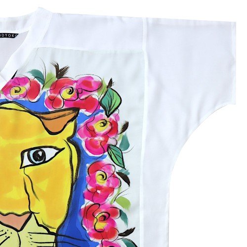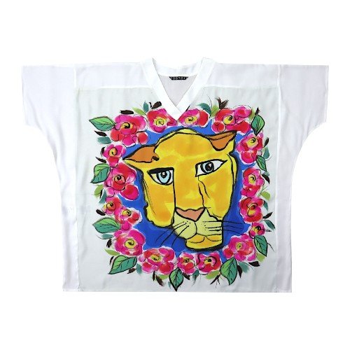 เสื้อตัวหลวมผู้หญิง - สีขาว : ลายเสือในมวลดอกไม้