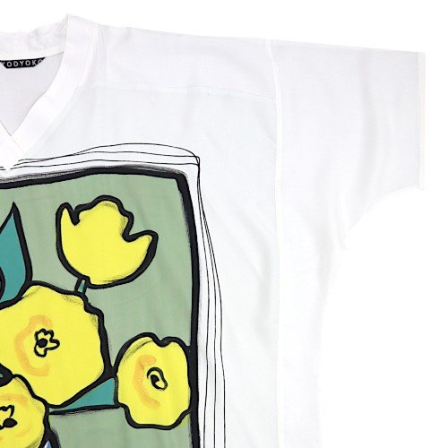 เสื้อตัวหลวมผู้หญิงจากแบรนด์ YODYOKO มาพร้อมกับลวดลายบนผืนผ้าที่สร้างสรรค์ด้วยมือจนเกิดเป็นผลงานศิลปะบนผืนผ้า