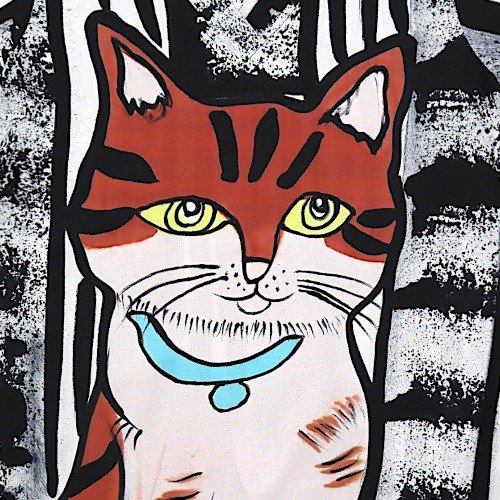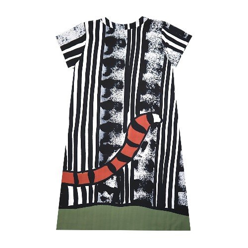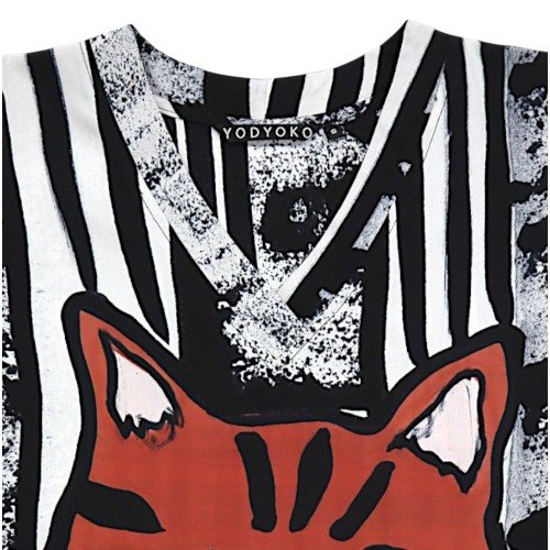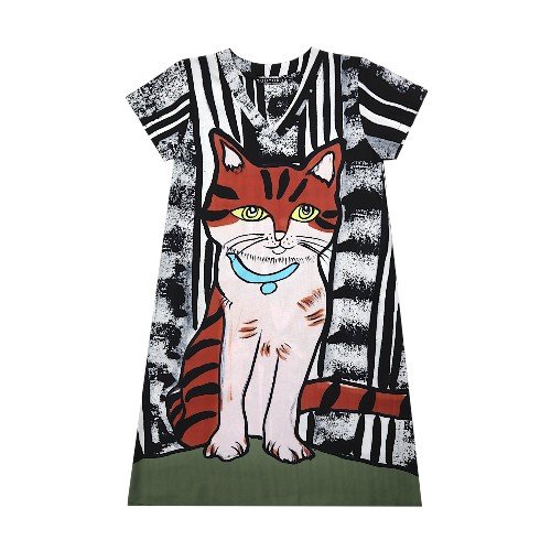 เดรสผู้หญิงแขนสั้น - สีดำ : ลายแมวลายเสือในกรอบศิลป์