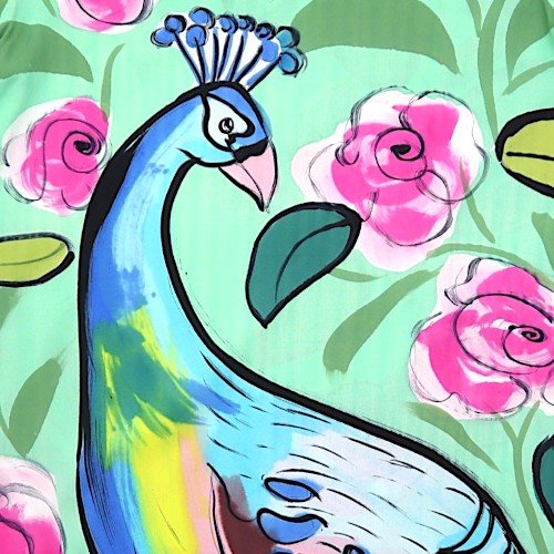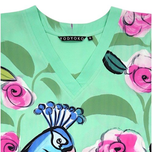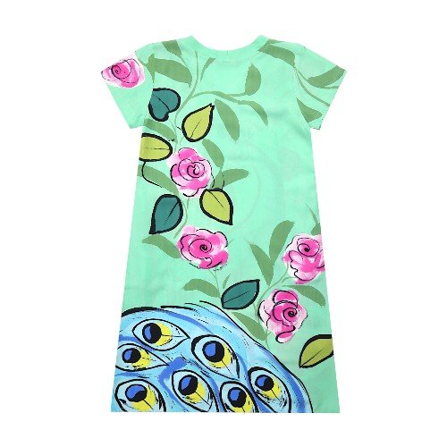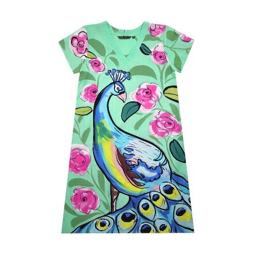 เดรสผู้หญิงแขนสั้น - สีเขียว : ลายนกยูงเจ้าหญิงแห่งพฤกษา