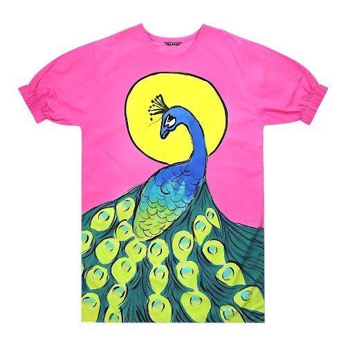 เดรสผู้หญิงทรงหลวมแขนยางยืด จากแบรนด์ YODYOKO มาพร้อมกับลวดลายบนผืนผ้าที่สร้างสรรค์ด้วยมือจนเกิดเป็นผลงานศิลปะบนผืนผ้า