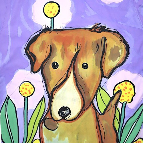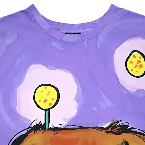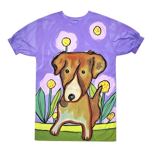 เดรสผู้หญิงทรงหลวมแขนยางยืด - สีม่วง : ลายสุนัขในสวนเหนือฝันสีม่วง