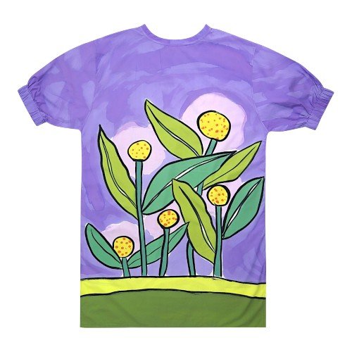 เดรสผู้หญิงทรงหลวมแขนยางยืด จากแบรนด์ YODYOKO มาพร้อมกับลวดลายบนผืนผ้าที่สร้างสรรค์ด้วยมือจนเกิดเป็นผลงานศิลปะบนผืนผ้า