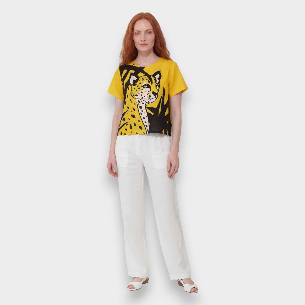 เสื้อครอปผู้หญิง - สีเหลือง : ลายเสือเหลืองในเงาไม้