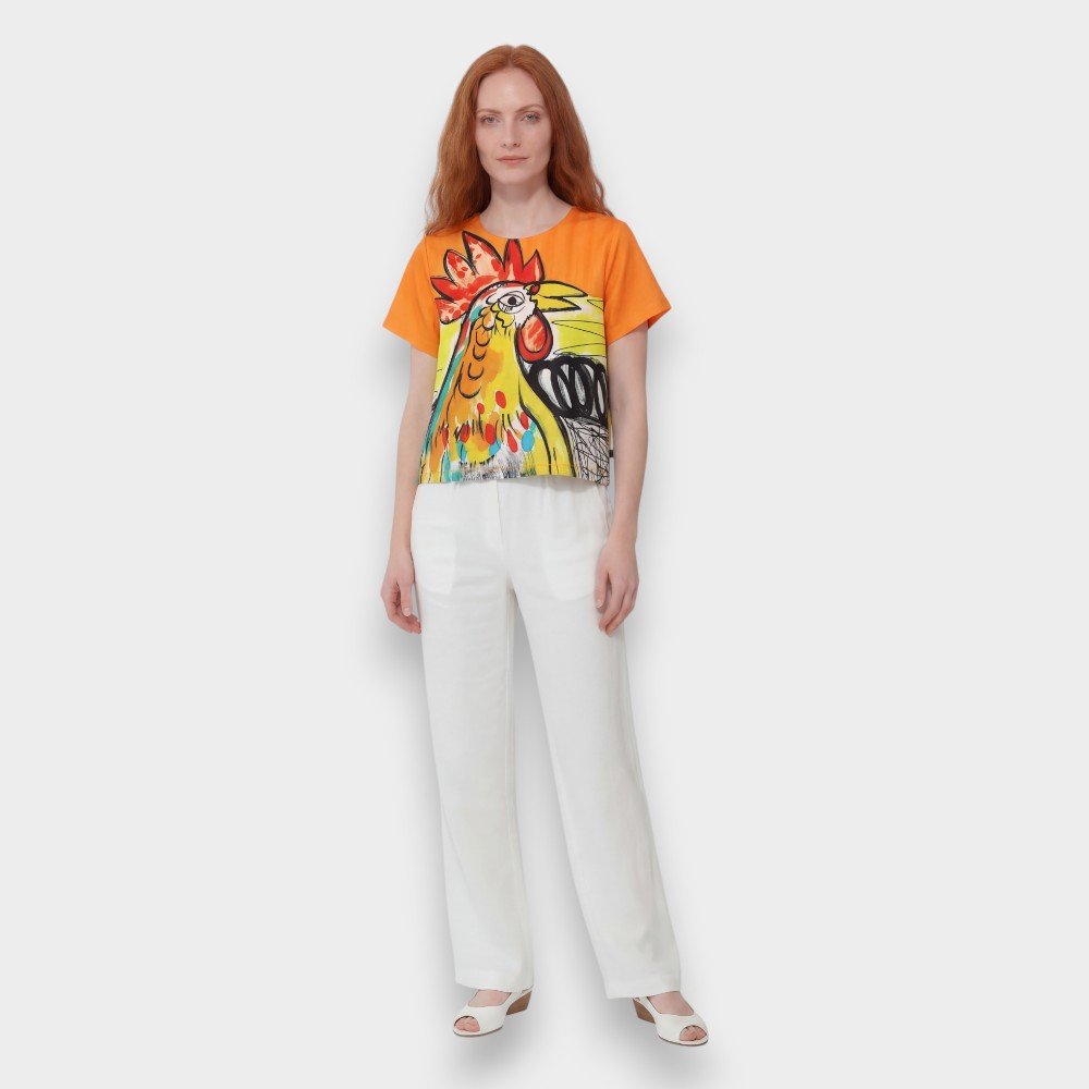 เสื้อครอปผู้หญิง - สีส้ม : ลายสีสันยามเช้ากับเจ้าขัน