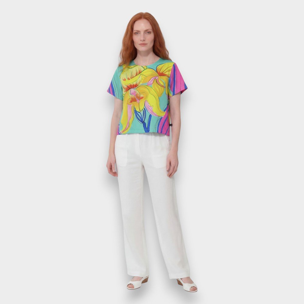 เสื้อครอปผู้หญิง จากแบรนด์ YODYOKO มาพร้อมกับลวดลายบนผืนผ้าที่สร้างสรรค์ด้วยมือจนเกิดเป็นผลงานศิลปะบนผืนผ้า